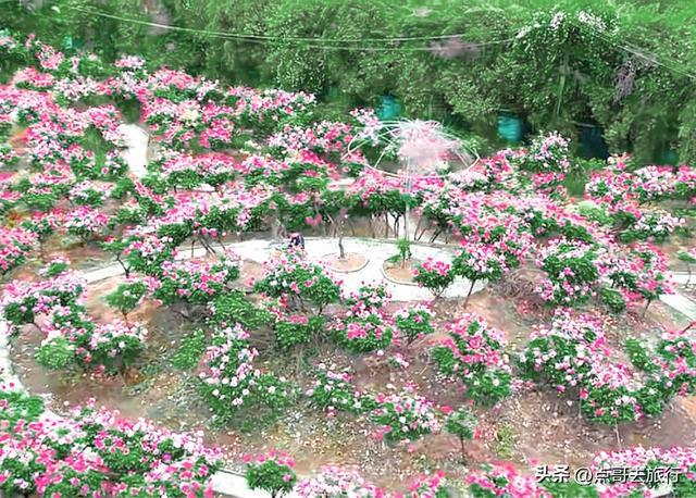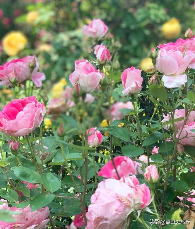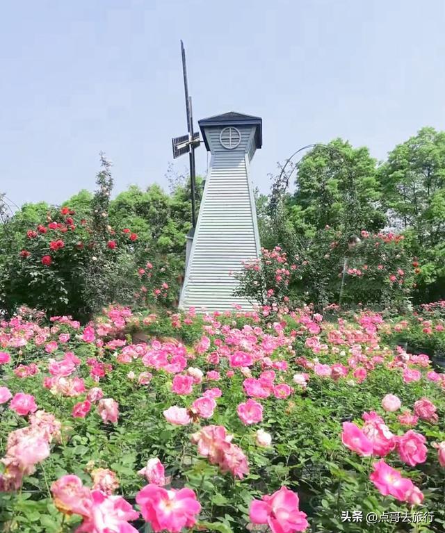 这里可谓是“玫瑰王国”,400多亩的花田,种植了超过200个品种的玫瑰。这里并非单一花田,而是集树状月季、欧月、藤本月季于一体的立体花海。汇聚了法国玫昂、德国科德斯等国际系列玫瑰,还有彩虹玫瑰(听说单株身价过万)、黄金庆典、大游行、紫水晶等热门品种,各种红、粉、白、黄、紫等颜色,简直就是五彩斑斓的玫瑰世界。拍照点位有玫瑰长廊、网红鸟巢、沙曼长廊等。在这里除了赏花,还能看到各种表演。现在正是盛花期。