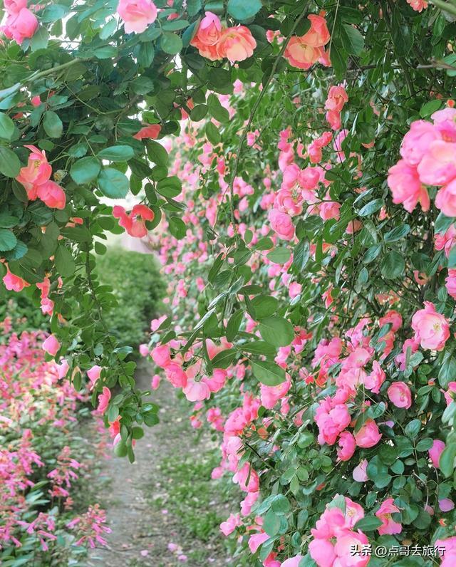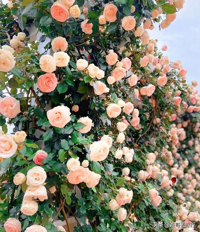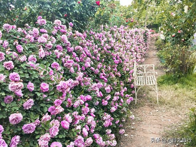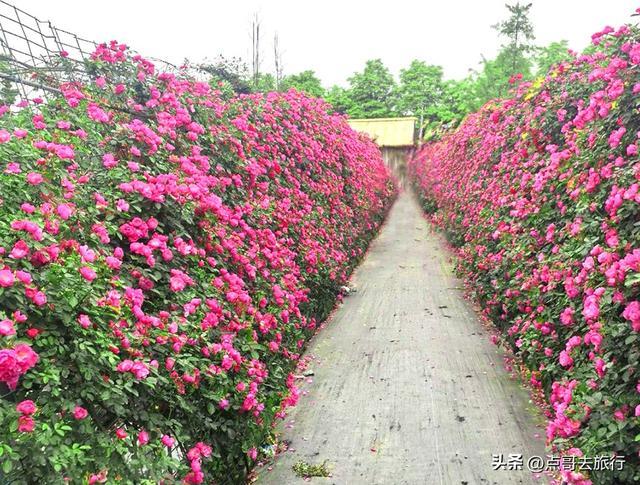 这里花田有700余亩,是成都近郊规模排列前的玫瑰、月季专类观赏园。园内有100多个玫瑰及月季品种,总计超10万株玫瑰和月季。涵盖丰花月季、藤本月季、食用玫瑰、古老月季等多个品类,颜色各异,美不胜收,能让人沉浸在花的海洋。园区有玫瑰长廊、玫瑰花墙、拱形花门等立体景观。特别是数百米长的玫瑰长廊,藤蔓交织、花朵垂挂,漫步其中花香扑鼻,在此拍照,出片率极高。除传统玫瑰外,还有稀有的月季花,花朵硕大、花瓣饱满,色彩从艳丽正红到温柔浅粉、纯净奶白、神秘深紫应有尽有,视觉冲击力极强。现在正是观赏期。