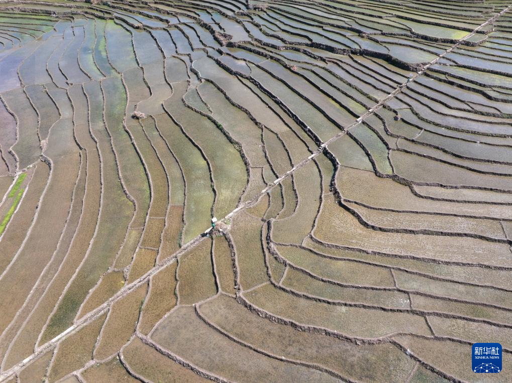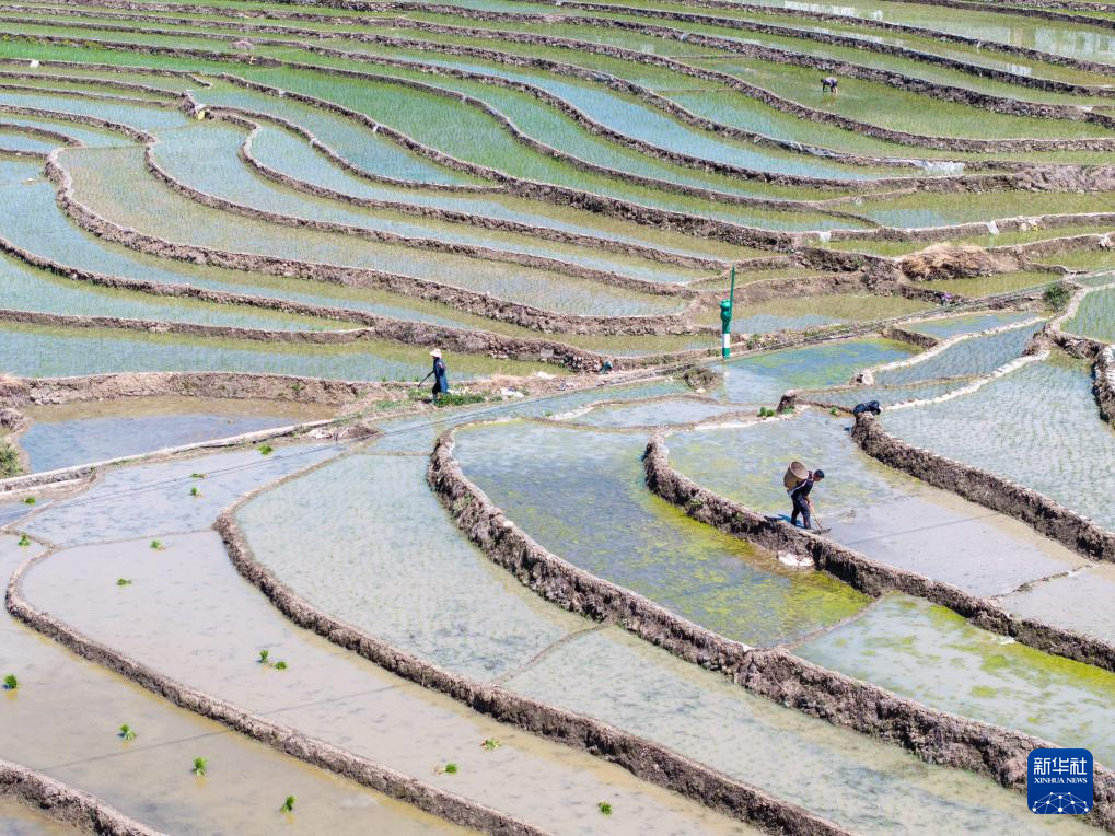 4月18日,村民在梯田上劳作(无人机照片)。